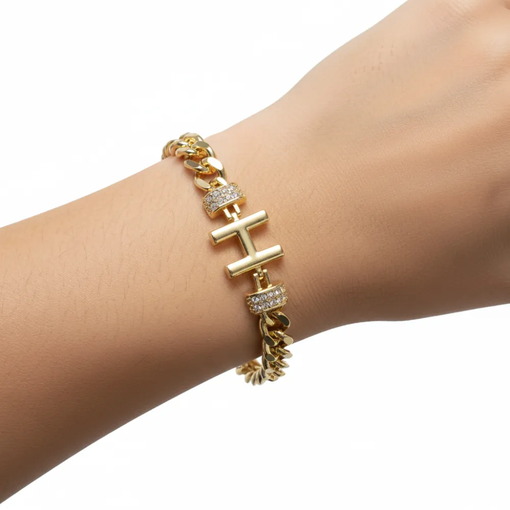 Taşlı H Harfi Gold Zincir Bileklik
