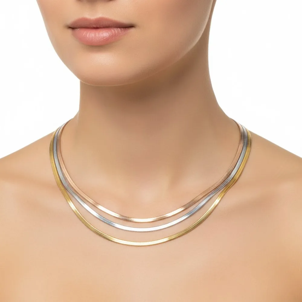 Üçlü Gold Gümüş Rose Zincir Kolye