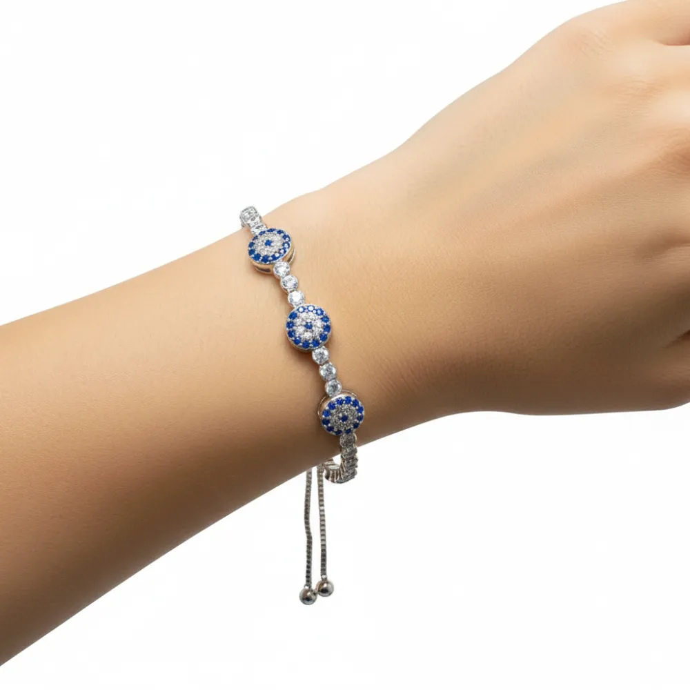 Üçlü Nazar Gözlü Gümüş Renk Bileklik